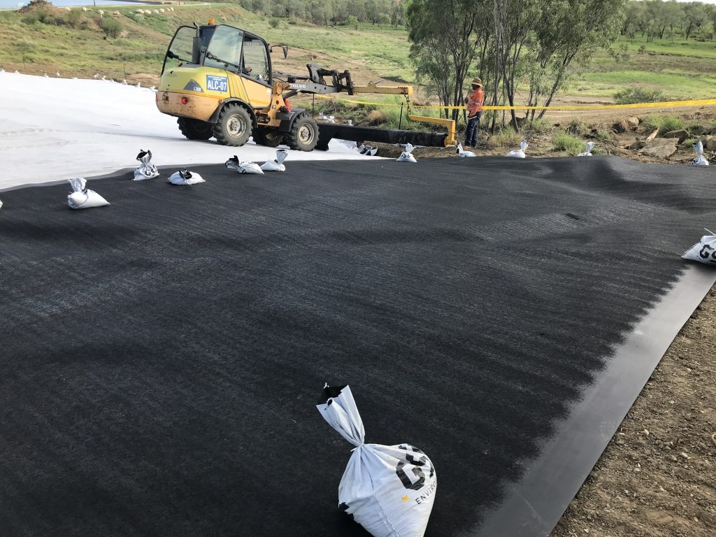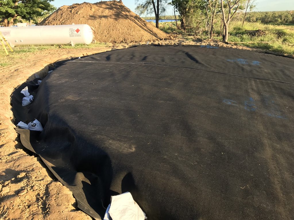 08:30 hours check of liner installation in area 6, work progressing well. Lack of wind makes job easier.